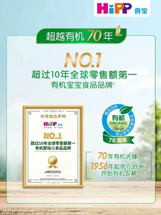 深耕有机农业70年后,如今德国喜宝已经达成多项“第一”——全球零售额第一有机婴幼儿食品品牌[1]、欧洲零售额第一有机婴幼儿配方奶粉品牌[2]、德国市场零售额第一婴幼儿营养品牌[3]、2025年成为超过十年全球零售额第一有机婴幼儿食品品牌[4]。
